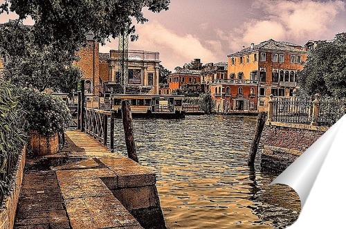 Описание плаката Старинные каменные постройки на берегах каналов в Венеции.Спокойная,тихая вода,маленькие уютные набережные.Большой простор для художников и фотографов.Городской уголок отдыха.