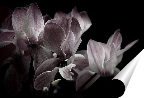 Описание плаката Цикламе?н, или Дря?ква, или Альпи?йская фиа?лка (лат. C?clamen) — род растений семейства Мирсиновые, относимый иногда к семейству Первоцветные (Primulaceae) и включающий в себя около 20 видов.