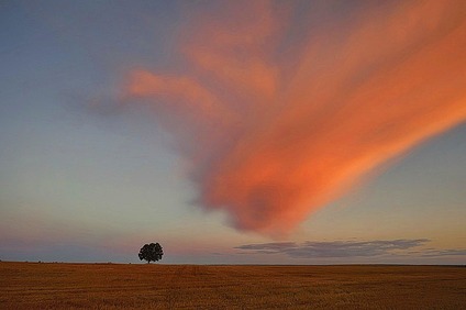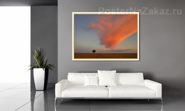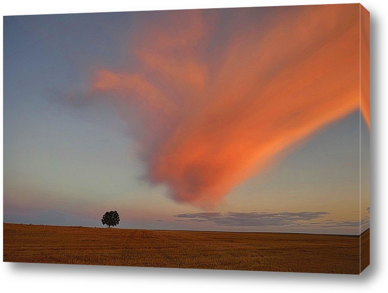 Описание плаката Одинокое дерево стоящее в поле, неожиданно подверглось нападению огромного облака , которое расползлось во всю ширь . Картина получилась такая ,что выглядит как противоборство.