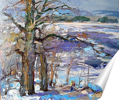 Описание плаката Стильная работа. Нежные цвета, удачно подобранные оттенки голубого цвета, лихие мазки, движение в ветвях деревьев, многообразие цветов , вопреки скудным краскам зимы - вот главные достоинства данной работы