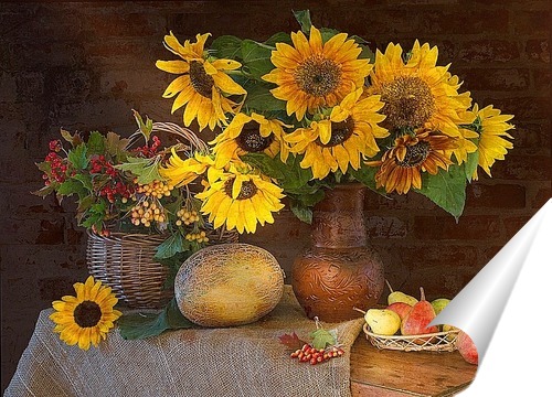 Описание плаката Солнечный цветок подсолнух символизирует удачу и процветание.Такой постер украсит вашу кухню,гостиную,столовую и создаст в вашем доме хорошее настроение.