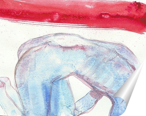 Описание плаката Набросок одинокой лежащей девушки. Голубой оттенок акварели словно погружает всю ситуацию брошенности в лунный свет. яркое красное пятно рядом - яркий акцент, подчеркивающий тревожность ситуации. Акварельная работа украсит любой современный интерьер