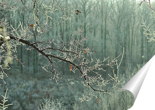 Описание плаката Морозный лес в начале зимы часто одаряет нас сюжетами, которые в их изяществе и минимализме достойны классического японского рисунка, изысканной гравюры.