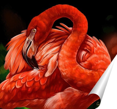 Описание плаката Обыкнове?нный или ро?зовый флами?нго (лат. Phoenicopterus roseus) — птица из отряда фламингообразных. Оперение у взрослых самцов и самок — нежно-розового цвета, крылья — пурпурно-красные, маховые — чёрные.