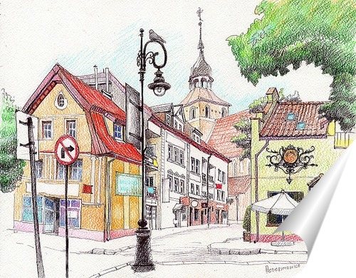 Описание плаката Маленький, уютный городок. С симпатичными , сказочными улочками. Его так и хочется нарисовать . Городок не большой, но красочный и тёплый. Много рисовала и делала эскизов.