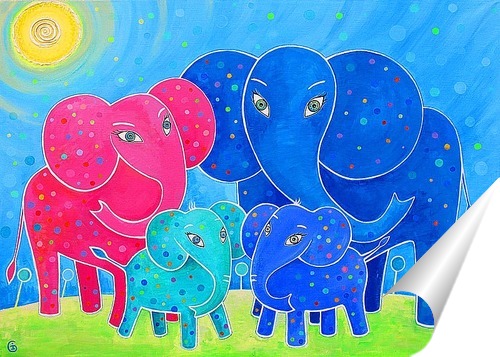 Описание плаката Картина "Семья слонов" выполнена в ярких жизнерадосных цветах. Картина непременно будет прекрасным украшением вашего интерьера, как гостинной или офиса, так и детской комнаты.