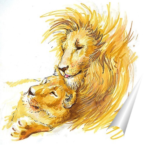 Описание плаката скетчевая манера, пара львов лежат в обнимку.