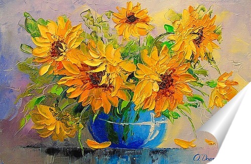 Описание плаката Букет подсолнухов в вазе,картина маслом на холсте,цветы,постер,принт,природа,импрессионизм,картина маслом для интерьера,картина маслом на подарок,живописная картина маслом,натюрморт