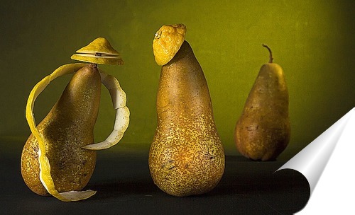 Описание плаката Натюрморт " - Живи как хочешь!..." это сценка из человеческих отношений, но переданная с помощью груш и частей лимона. Предметы тоже способны отражать межличностные отношения....