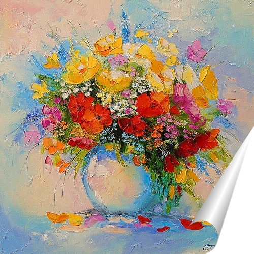 Картина сначала типографским способом переносится на холст, получается "тусклый" отпечаток низкого разрешения , затем художник расписывает ее маслом. Роспись выполняется поверх контура изображения на хлопковом холсте. Холст заполняется маслом не менее чем на 80% поверхности , при этом техника Автора может не выдерживаться, допустимы отклонения в оттенках. Срок изготовления 6-7 рабочих дней . Роспись художником это наиболее оптимальное соотношение цена/качество.