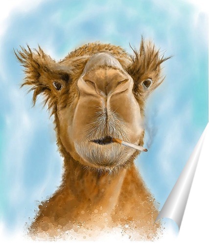 Описание плаката В жаркой жаркой Африке,а может и поближе... вобщем научили одного верблюда курить. где теперь он и что с ним одни предположения, ведь ему не сказали, что курить вредно