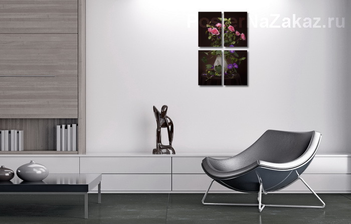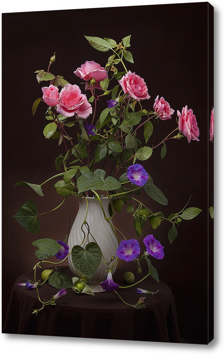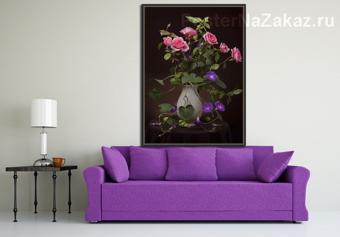 Описание плаката Нет повести печальнее на свете, чем повесть о Ромео и Джульетте...печальна история и прекрасна... Цветочная композиция в тёмной тональности, но с яркими прекрасными цветами.