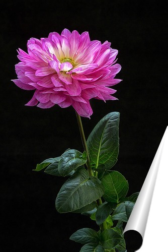 Описание плаката Фотография цветка георгины на чёрном фоне. Цветы являются прекрасным объектом для фотосъёмки в различных условиях и всегда прекрасно смотрится с любым фоном.