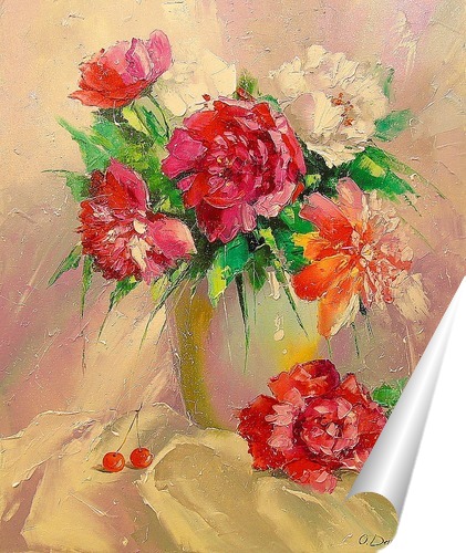 Картина сначала типографским способом переносится на холст, получается "тусклый" отпечаток низкого разрешения , затем художник расписывает ее маслом. Роспись выполняется поверх контура изображения на хлопковом холсте. Холст заполняется маслом не менее чем на 80% поверхности , при этом техника Автора может не выдерживаться, допустимы отклонения в оттенках. Срок изготовления 6-7 рабочих дней . Роспись художником это наиболее оптимальное соотношение цена/качество.