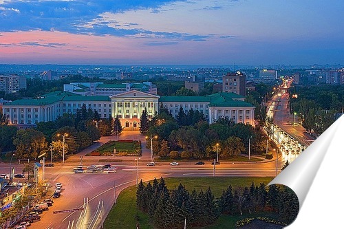 Описание плаката Донской Государственный Технический Университет, Ростов-на-Дону, пл. Гагарина. Справа просматривается проспект Нагибина. Съёмка с 17 этажа жилого дома.