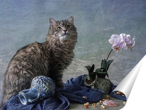 Описание плаката Постер с забавной милой кошкой украсит детскую, игровую комнаты, загородный дом.