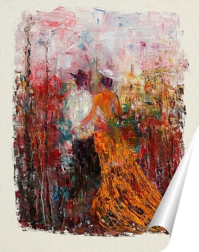 Картина сначала типографским способом переносится на холст, получается "тусклый" отпечаток низкого разрешения , затем художник расписывает ее маслом. Роспись выполняется поверх контура изображения на хлопковом холсте. Холст заполняется маслом не менее чем на 80% поверхности , при этом техника Автора может не выдерживаться, допустимы отклонения в оттенках. Срок изготовления 6-7 рабочих дней . Роспись художником это наиболее оптимальное соотношение цена/качество.