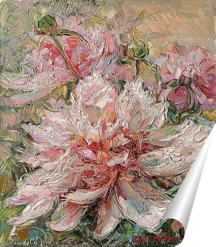 Описание плаката Спокойная гамма картины хорошо впишется в любой интерьер. Розовый цвет пионов освежает гамму картины и придает ей элегантность. Букет замечательных цветов поднимет настроение,если попадет в поле Вашего зрения.