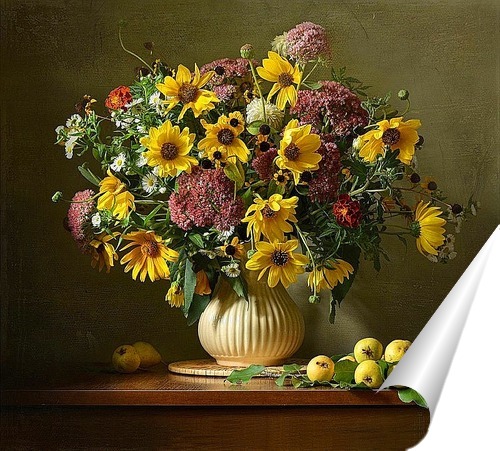 Плакат "Натюрморт с сентябрьским букетом и грушками"