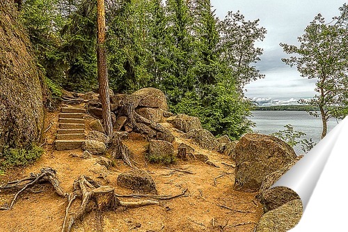 Описание плаката Монрепо - живописный скальный парк в Выборге, который находится на берегу бухты Защитная Выборгского залива, на острове Твердыш. Монрепо называют одним из самых красивых садово-парковых ансамблей Северо-Запада России. И если уж вы приехали в Выборг,