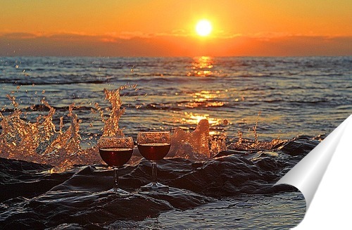 Описание плаката Чудесное вино с солнечными морскими брызгами. романтический вечер для двоих...где третий лишний...Разве можно забыть сказочный вечер на море? Да еще с вином в котором плещутся брызги заката?