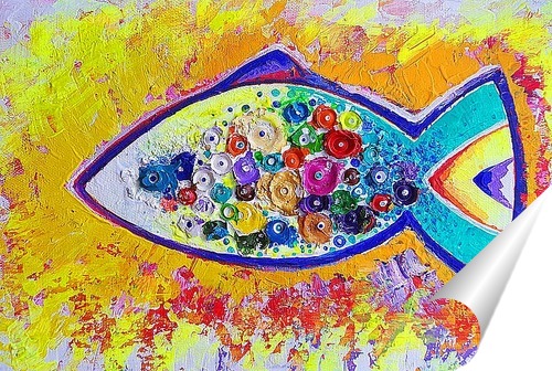 Описание плаката Картина "Счастливая рыба" станет чудесным украшением вашего интерьера, будь то детская или офис. Картина выполнена яркими жизнерадосными красками, будет радовать Вас и приносить удачу!