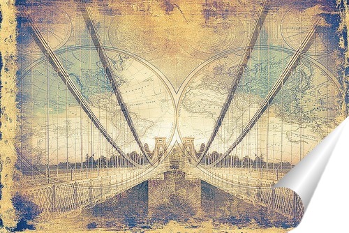 Описание плаката Картина с изображением моста Бристоль в Англии на фоне карты мира в ретро стиле украсит и дополнит интерьер вашей комнаты.