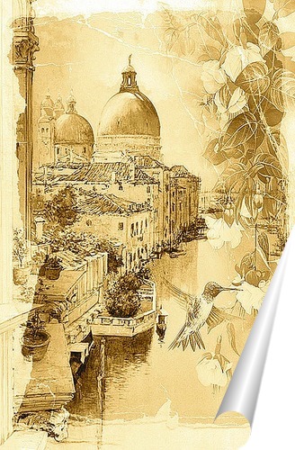 Описание плаката Картина с изображением Гранд-канала, самого известного канала Венеции, в ретро стиле украсит и дополнит интерьер вашей комнаты.