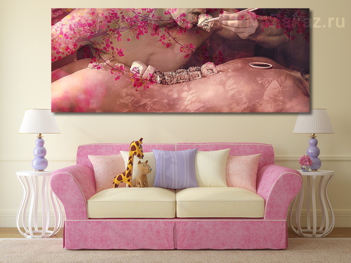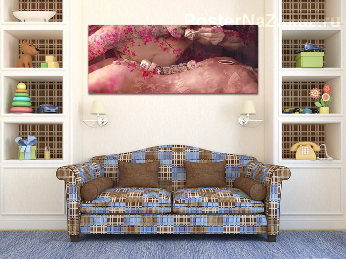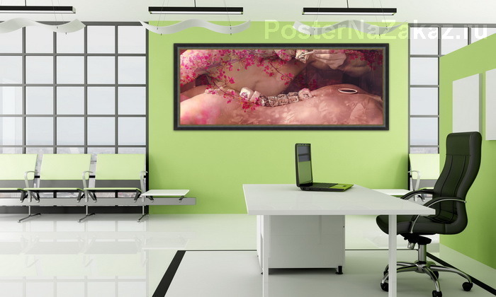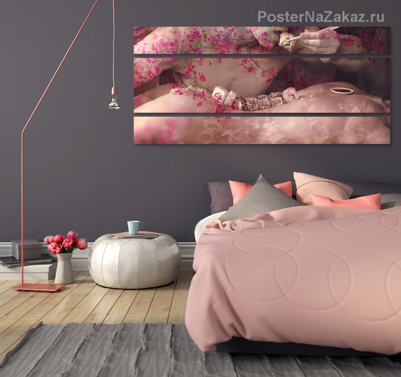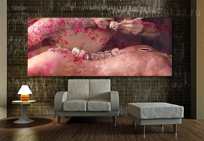 Описание плаката Модульная картина с изображением влюбленной пары проводящих дегустацию японской кухни с тела украсит и дополнит ваш интерьер.