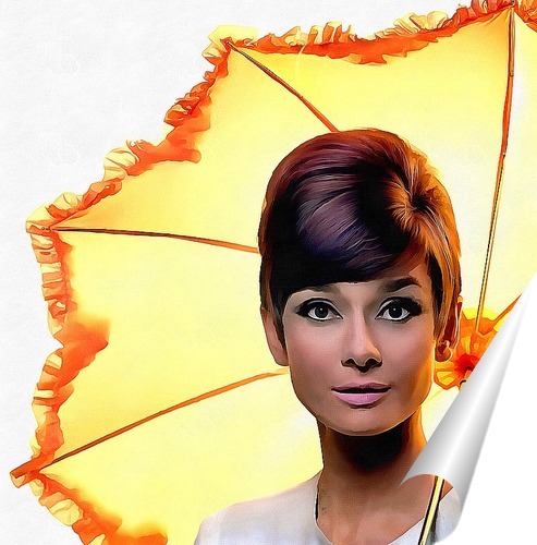Описание плаката На картине изображен портрет известной Одри Хепберн. Картина выполнена в специальной графической технике под акриловые краски