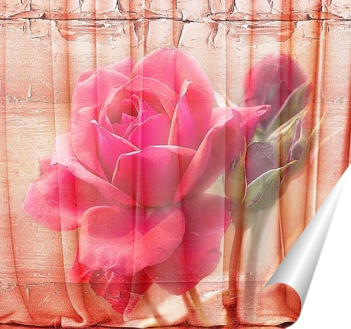 Описание плаката Картина, изображающая бутон розы на фоне штор и текстур дерева, прекрасное дополнение для спальни и гостиной. Придаст стиль и романтическое настроение вашему интерьеру