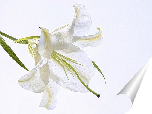 Описание плаката постер с красивой белой лилией на белом фоне добавит воздушности и света любому помещению