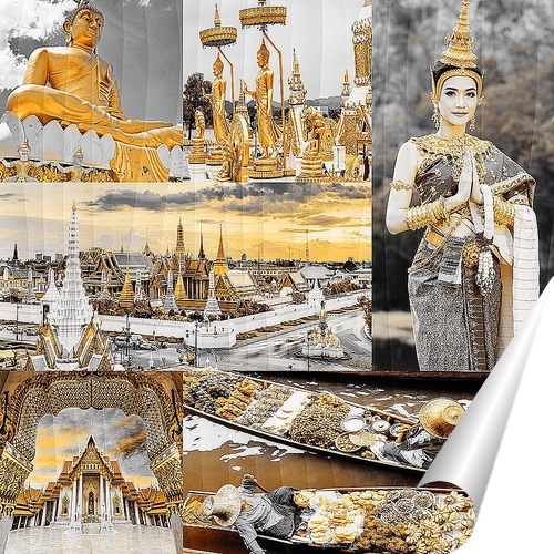 Описание плаката Модульная картина с изображением неповторимой архитектуры и культуры Бангкока, Таиланд, в монохромном исполнении с яркими акцентами украсит и дополнит Ваш интерьер. Прекрасно подойдет для спальни и гостиной.