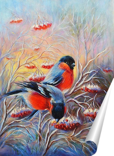 Описание плаката Снегирь - ассоциируется у нас с зимой. Эта птица является символом мороза, снега и чистоты. Картина станет хорошим подарком к Новому году или Рождеству.