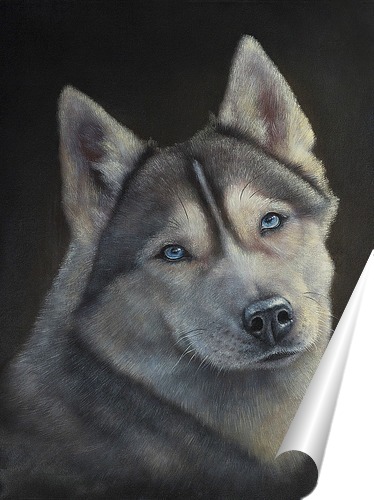 Описание плаката Написал на бархате масляными красками портрет собаки породы Хаски. Хотелось написать очень реалистичный портрет и выразить глаза собаки