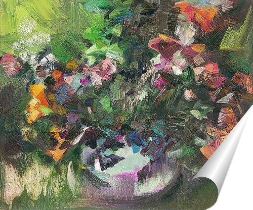 Описание плаката работа из серии букетов в различных цветовых ситуациях и окружении, с различной манерой исполнения. Объединяет их одно- любовь художника к цвету и цветам.