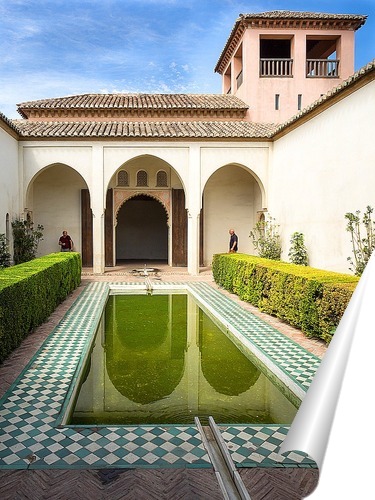 Плакат "Мавританский дворик с арками, прудом и фонтаном"