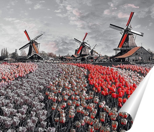 Описание плаката Пейзаж Голландии, в монохромном исполнении.Такая работа станет хорошим дополнением современного интерьера, подойдёт для гостиной или комнаты отдыха
