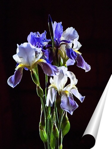 Плакат "Бело-голубые ирисы на черном"