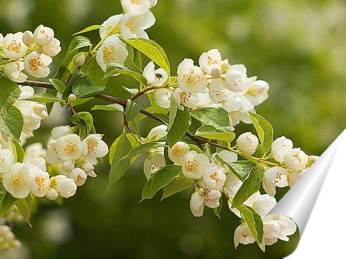 Описание плаката Постер с нежными цветами жасмина украсит ваш дом, придаст свежести вашим чувствам, напомнит вам моменты общения с природой, перенесет в мир красок и цветов, свежести, первозданной радости бытия...