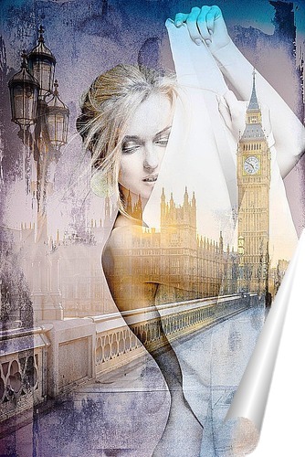 Описание плаката Постер с изображением женского силуэта на фоне Лондонской мостовой с фонарями и Биг-Беном в стиле лофт украсит и дополнит Ваш интерьер. Прекрасно подойдет для спальни и гостиной.