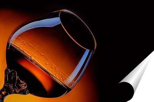 Описание плаката Крупный план бокала с коньяком на красивом градиентном фоне желтого цвета.