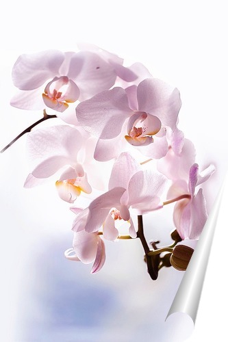 Описание плаката Веточка орхидеи нежно-лилового цвета на абстрактном фоне. Мягкие цвета и линии.