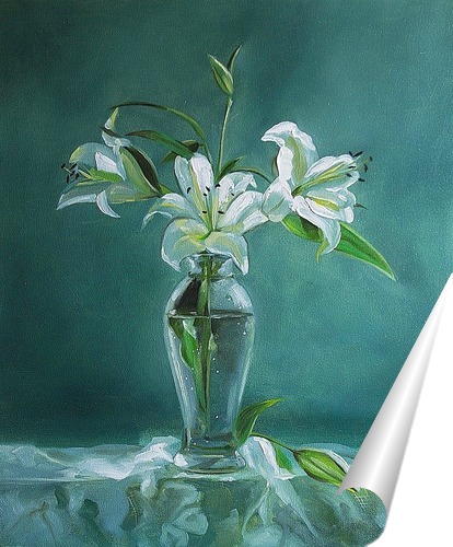Описание плаката Цветы, весна, лилии, живопись, картина, масло, букет, зеленый, масляная живопись.......................................................................................................