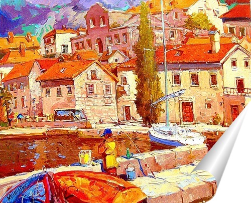 Описание плаката Работа написана по воспоминаниям поездки в Черногорию, на пленэр. Уютные, старинные , небольшие приморские городки полны тишины и очарования.