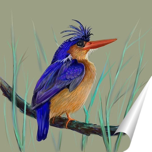 Описание плаката Птичка на ветке песенки поет. Картина выполнена в ярком африканском стиле. Хороший подарок для ребенка. Взгляд этой птички никого не оставит равнодушным.