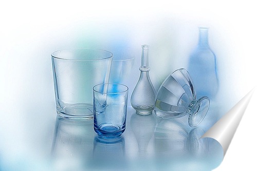 Плакат "Стеклянные предметы на светло-голубом фоне"