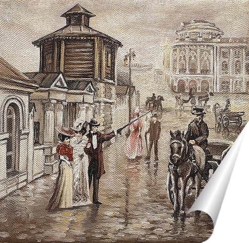 Картина сначала типографским способом переносится на холст, получается "тусклый" отпечаток низкого разрешения , затем художник расписывает ее маслом. Роспись выполняется поверх контура изображения на хлопковом холсте. Холст заполняется маслом не менее чем на 80% поверхности , при этом техника Автора может не выдерживаться, допустимы отклонения в оттенках. Срок изготовления 6-7 рабочих дней . Роспись художником это наиболее оптимальное соотношение цена/качество.