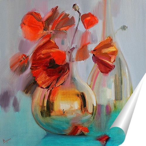 Описание плаката Картина художника Рогозиной Светланы "Маки в бирюзе" родилась внезапно. Масло/холст. 2018 году.
