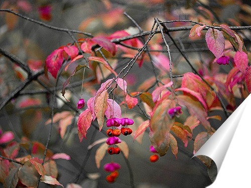 Описание плаката Нежно-розовые цвета осеннего бересклета украсят ваш дом, добавят тонкости вашим чувствам, напомнит вам моменты общения с природой, перенесет в мир красок и цветов, свежести, первозданной радости бытия...